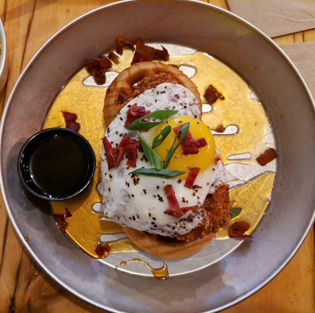 Love this place. Food was top notch, atmosphere is right up my alley, and staff were friendly and attentive. I had the Nashville Chicken Sandwich and Waffle Fries - both were super tasty. Good portion sizes - my wife and I were both stuffed after dinner. Try the cheesecake!