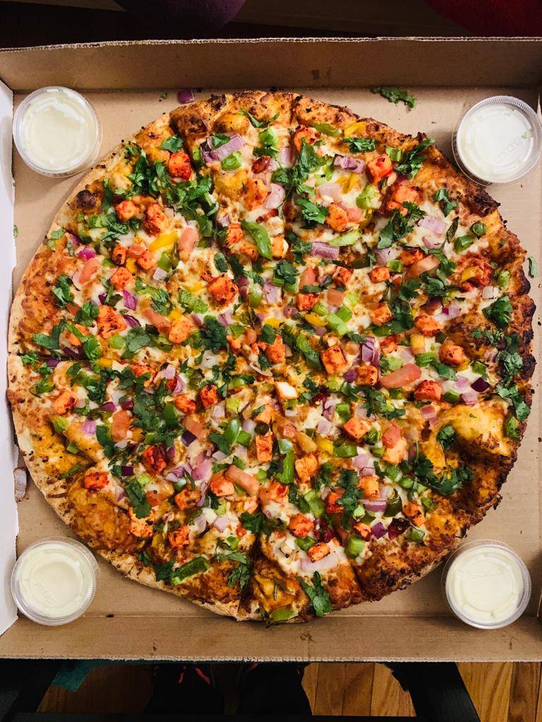 This is the best pizza in Hamilton, highly recommended, great staff, awesome service, their spicy paneer topping is a must try.
