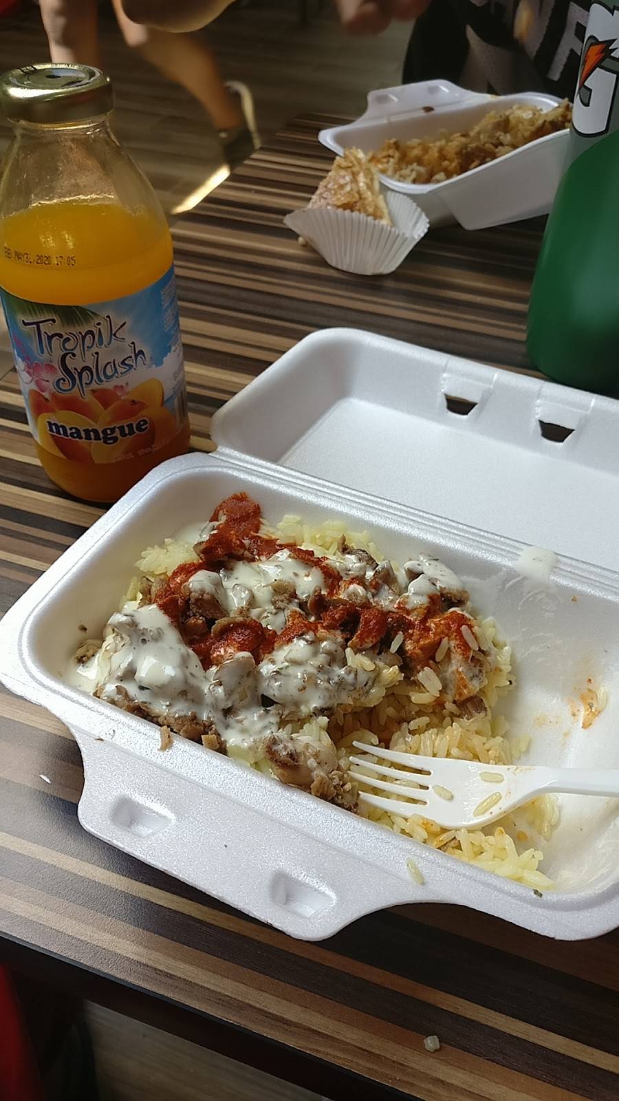 Better than usual. I'm a frequent customer at Lazeez, not necessarily this specific branch but I tend to stop at any on the road to my destinations. I usually get a regular Half and Half Chicken (half rice half fries, chicken on the top drizzle of garlic sauce) I asked for extra garlic which is something I do often and they did not even bother adding it. Food was good everything came on time and was warm so that's good.