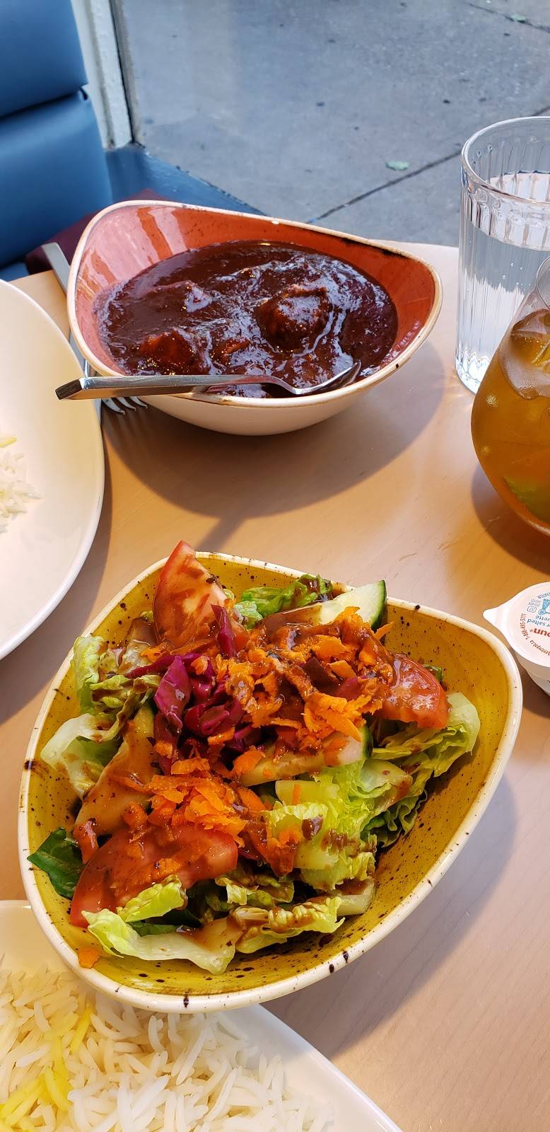 Had dip and bread, and a salad that were good, and 2 medium quality antrees, the vegetarian looked good but was under seasoned and abeef with eggplants tat was laking spices. Cardamom and white chocolate ice cream was good.