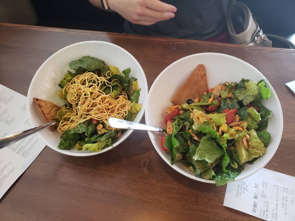 This salad bar is great. The customer service is amazing and the different flavor profiles that are presented are well made. If this is your first time, get the Bangkok salad (left). A close second is the southwestern (right).