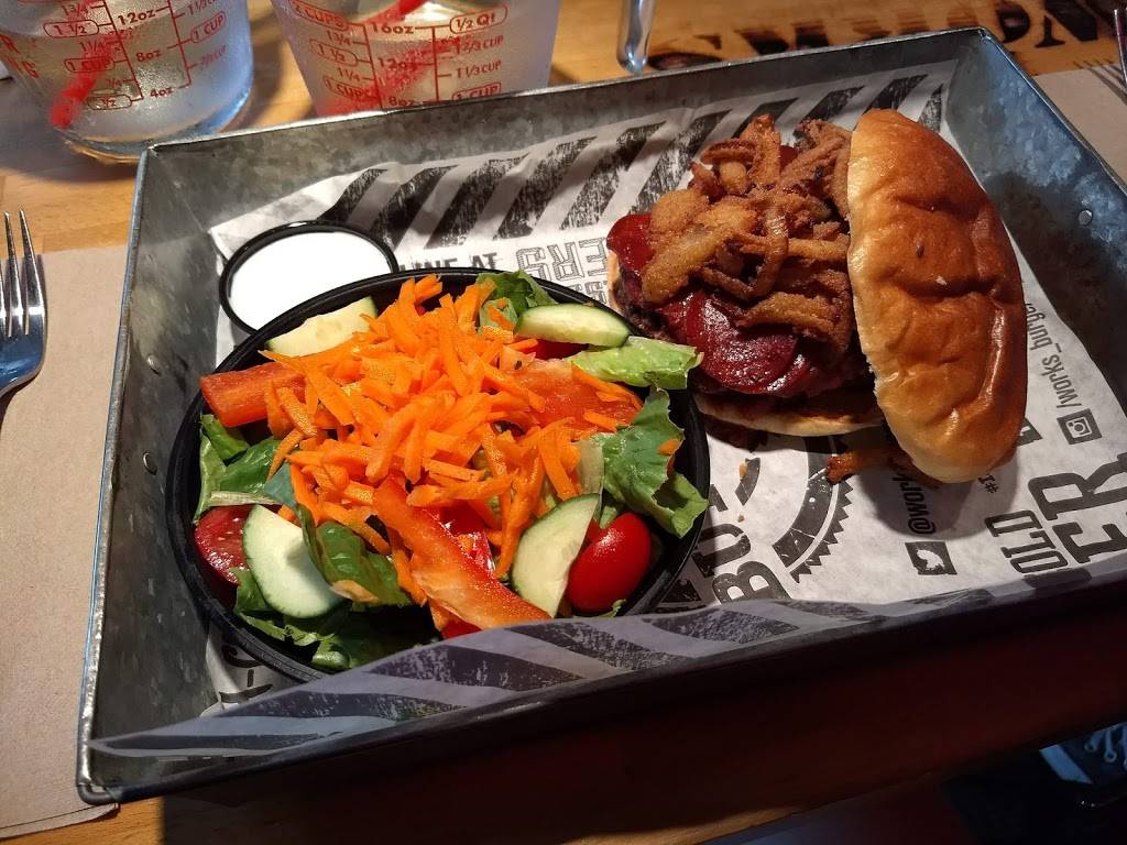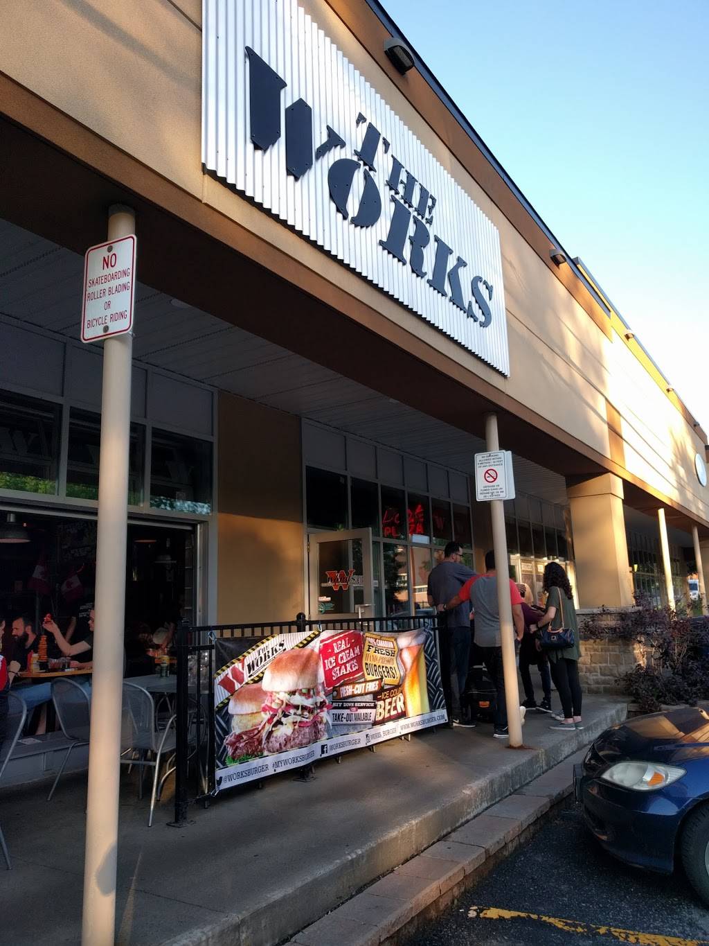 The works is one of my favourite burger joints. Their atmosphere, decor is fun, I love going there. They offer a great variety of burger patties, sides, drinks, and toppings. This is not your classic usual burger place. They are very creative with their toppings. My favourite burger/meal I recommend is "elk on a beech with spicy die cut potatoes or broccoli" on the side. One of the few spots that offers elk patties and you gotta love it. Amazing taste with a lot less fat compared to beef. Service can be on and off depending on who is serving and the location. This branch has usually been generous to us with offers in mail. Also the last time my wife and I visited, we were the last people and unfortunately had one of our patties burnt. We let our waitress know. She offered us the meal for free. We will definitely go again to enjoy their unique and special burgers.
