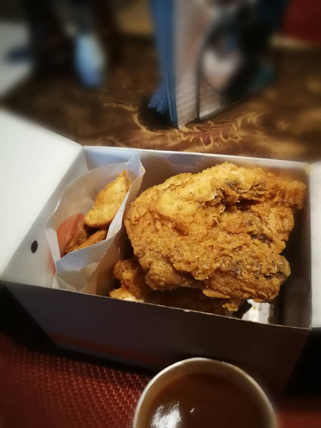 Awesome chicken. I ordered 2 combos. Chicken was perfect, crisp and not greasy at all. I enjoy the taters and tonight asked for extra spice, nice! Will add that next time.
