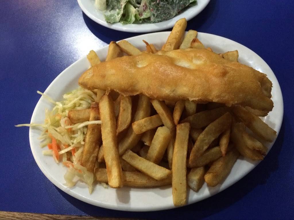 Place looks closed at night, outside signage is out. Food service a d quality have nothing to do with appearance. Fish was so tasty, onion rings great, salad fresh and crispy. Poutine was really good also. May look dumpy from outside but there is a reason it's full inside.