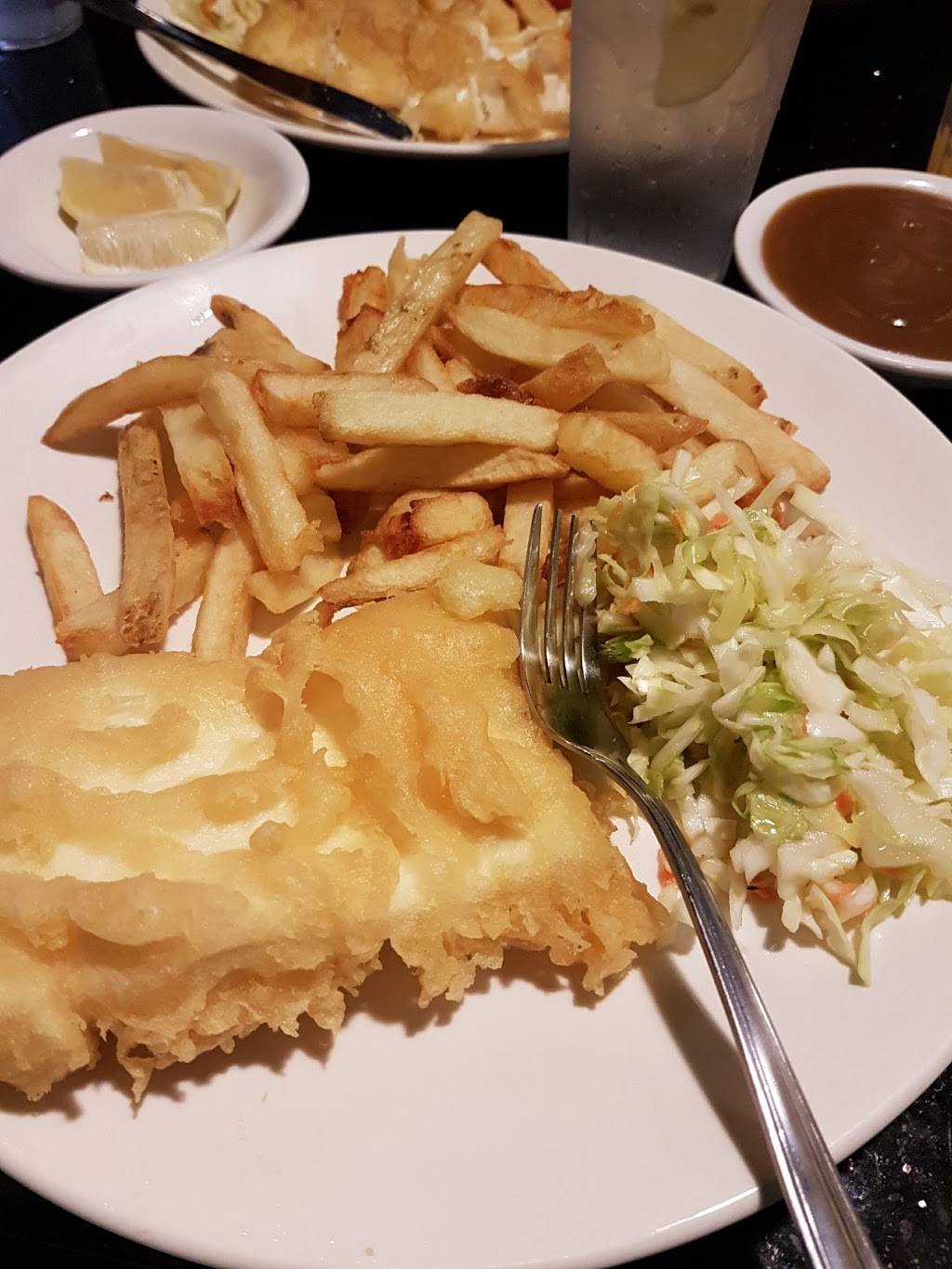 First time at this location. We were disappointed that the Mon special was not being honoured due to Victoria day holiday. The food was great! Generous portions and perfectly cooked. We had haddock and chips and the seafood platter. Service was a little slow but very polite and friendly - waitress may be new. Overall happy with our experience here.