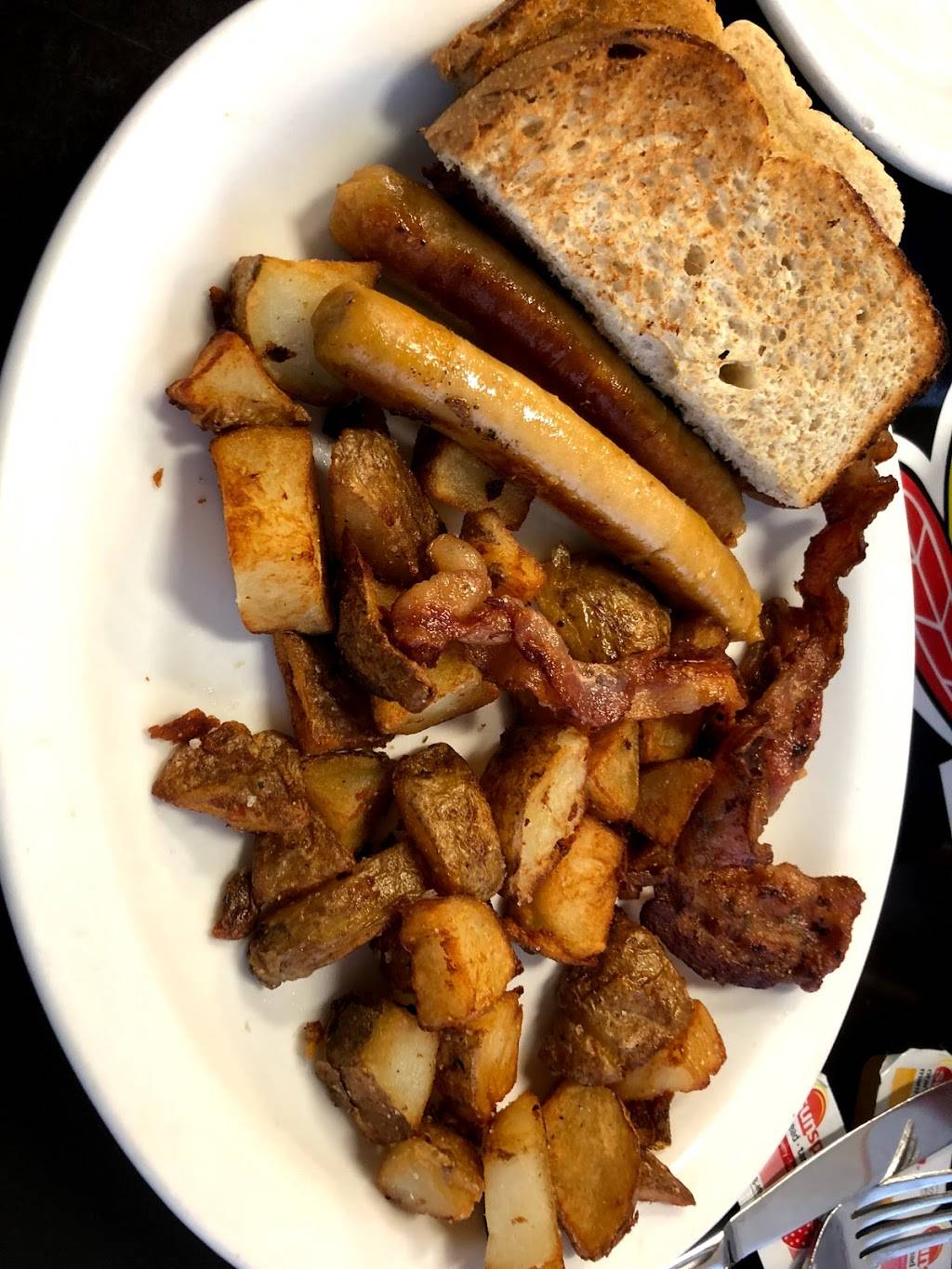 This place was okay. The potatoes were all of the place, cook wise. Some were under, some were perfect, some were way over. No consistency. As in other reviews, their eggs were on the smaller side but I don't think this was a real problem. They asked me how I would like my bacon, which I appreciated, and it came out perfectly. However, I didn't like the environment, as there were a lot of staff shouting instructions or questions at each other, sometimes directly behind me, which interrupted my meal. It took a long time for someone to come take our order as well. Probably wouldn't go back.