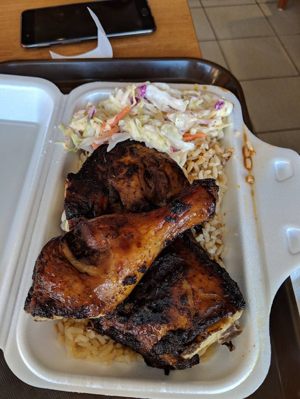 The jerk chicken was amazing, he also had this very flavorful pepper sauce that is super flavorful