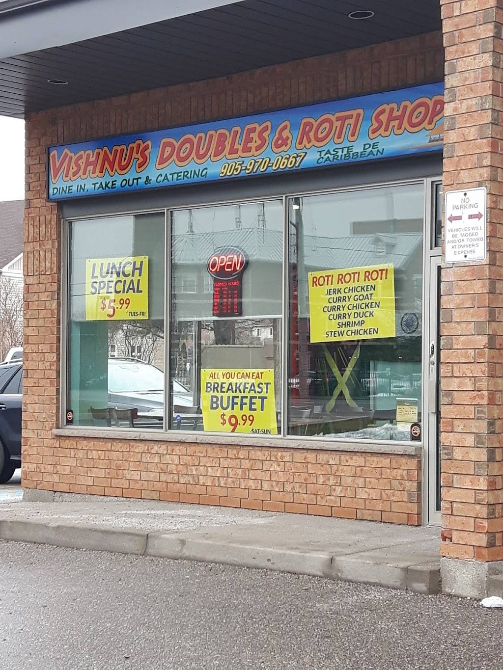 Service was good and fast for take out. I am used to eating from Charlie's in Mississauga .. and Vishnu is not up to mark for me. They have no fried rice or noodles. Their doubles were good. Chicken was good too, but not as good as I am used to. Might not go back. We had asked and paid for 20 pholourie by only received 10.. only realized it when we reached home.