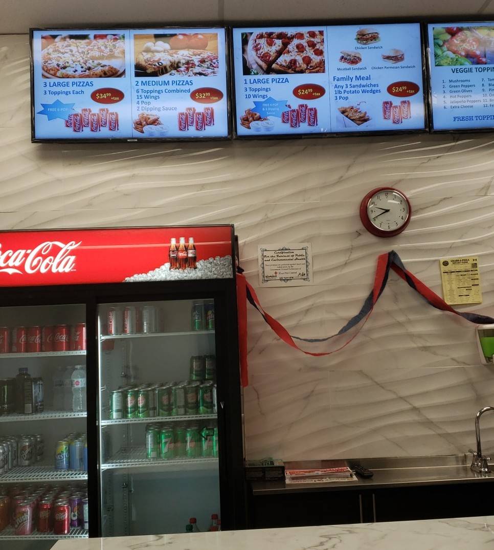 I was visiting my friend on Airport Road and saw another store sign of Grabb A Pizza .