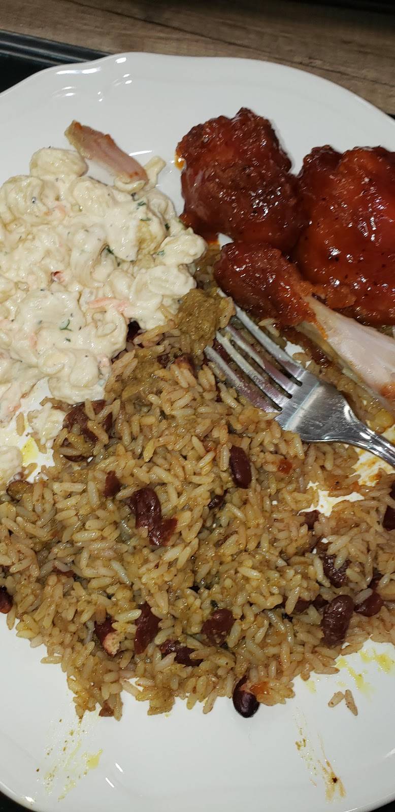 Best jerk chicken ever, delicious beef roti and amazing macaroni salad. Everything was super flavorful with just the right amount of spice. Nice clean place. Wanda was really friendly too. Will be back often. Highly recommended.