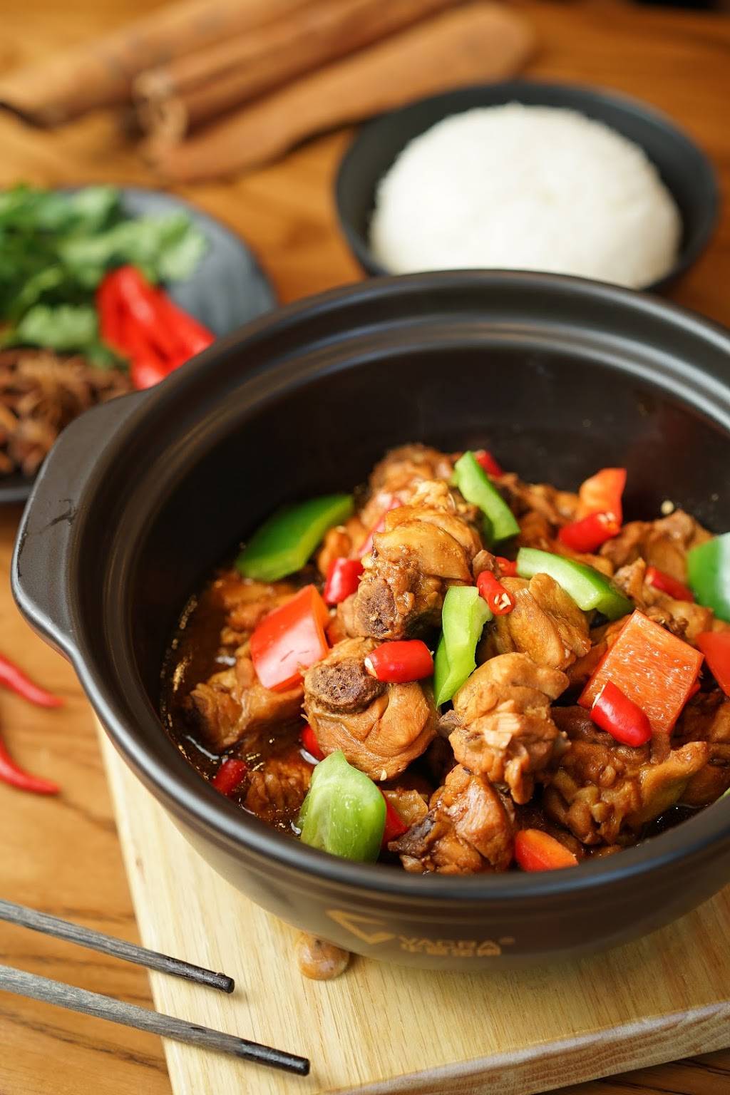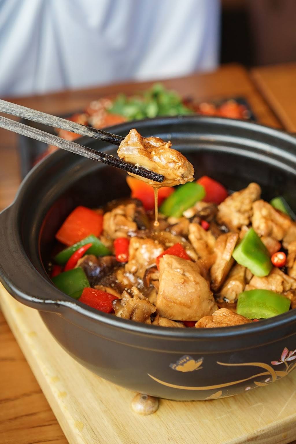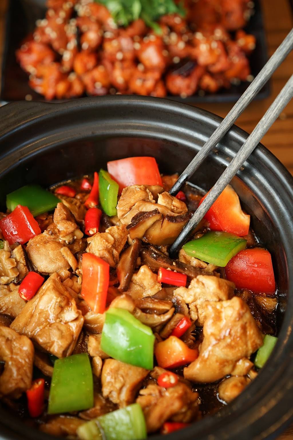 My friend and I had the Yang's Braised Chicken Rice, the house specialty, Popcorn Chicken, and Eggplant with Sesame Sauce. The braised chicken was served sizzling, in a hot pot, with a bowl of rice. The generous serving had a home cooked look and taste. Not bad but not the restaurant quality that I expected.