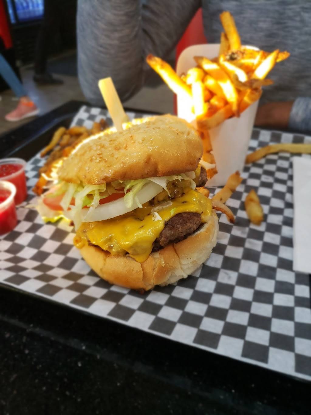 Burger was decent. Poutine was bland. I suggest using cheese curds and make the gravey with more flavour. Television was not working at time we were there. Small store as well.