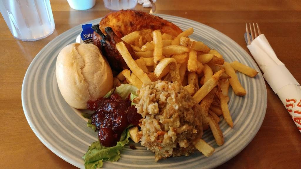 I'm actually not sure who gets to benefit from my review be it that I ordered Swiss Chalet and something from Harvey's at the same pick-up cash. We love this restaurant combo and the fact that we can select off of 2 menus at one cash and don't require sit down service to do so. Our experience has always been great here even during the busiest of times. Staff are super accommodating and always positive. Today Rocco at the cash was great. He really new his stuff across the board. Answered all my questions and said no problem on any extras I needed, i.e.: cups of water (that he filled for us), provided an extra Chalet house dressing when asked for it, and used a coupon code for me so I could try the "Lightlife" plant-based burger in a combo and save a bit of money cuz the coupons I had didn't have that one. He really showed he cared and than means a lot at the end of the day. Customer service at it's best!