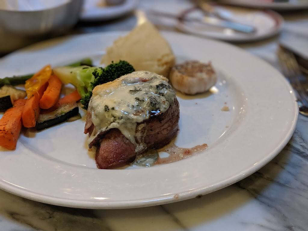 Very upscale steakhouse that has nice lounge. You can make reservations for both the dining room and lounge! It's not very busy though. Food itself was pricey, but pretty good. Portion sizes aren't very large. I got a side of mashed potatoes and it was pretty dry. The beef barley soup was very good! Service was very good, our waiter kept checking on us frequently, but not so frequently that it was annoying.