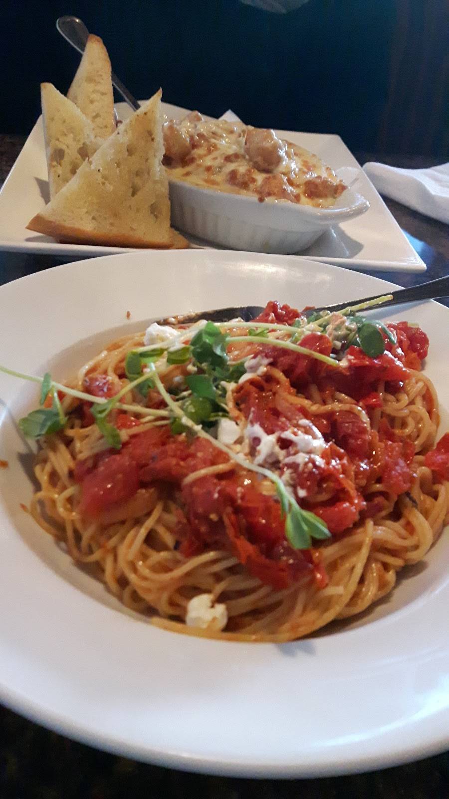 We were advised to make a reservation so we first tried online booking from their site. This is not functioning at this time. I called and left message to make reservation for 5 pm at around 2 pm. They open for 4:30 pm. I never got a call back and we decided to go anyway. I mentioned this to I suspect the owner who greeted us at the door and she was apologetic and said she would see what happened. They took us in with no reservation. They were booked pretty solid for the night. The decor was nice the food was good very tasty. We had regular bruschetta and the calamari appetizers both were good size portions and tasty. We both had the chicken carbonara main and very rich and good portions as well. The service was good from server to kitchen. We also enjoyed the desserts one was the caramel cheesecake and the other was chocolate mouse brownie. I would recommend this place and will be returning in future.
