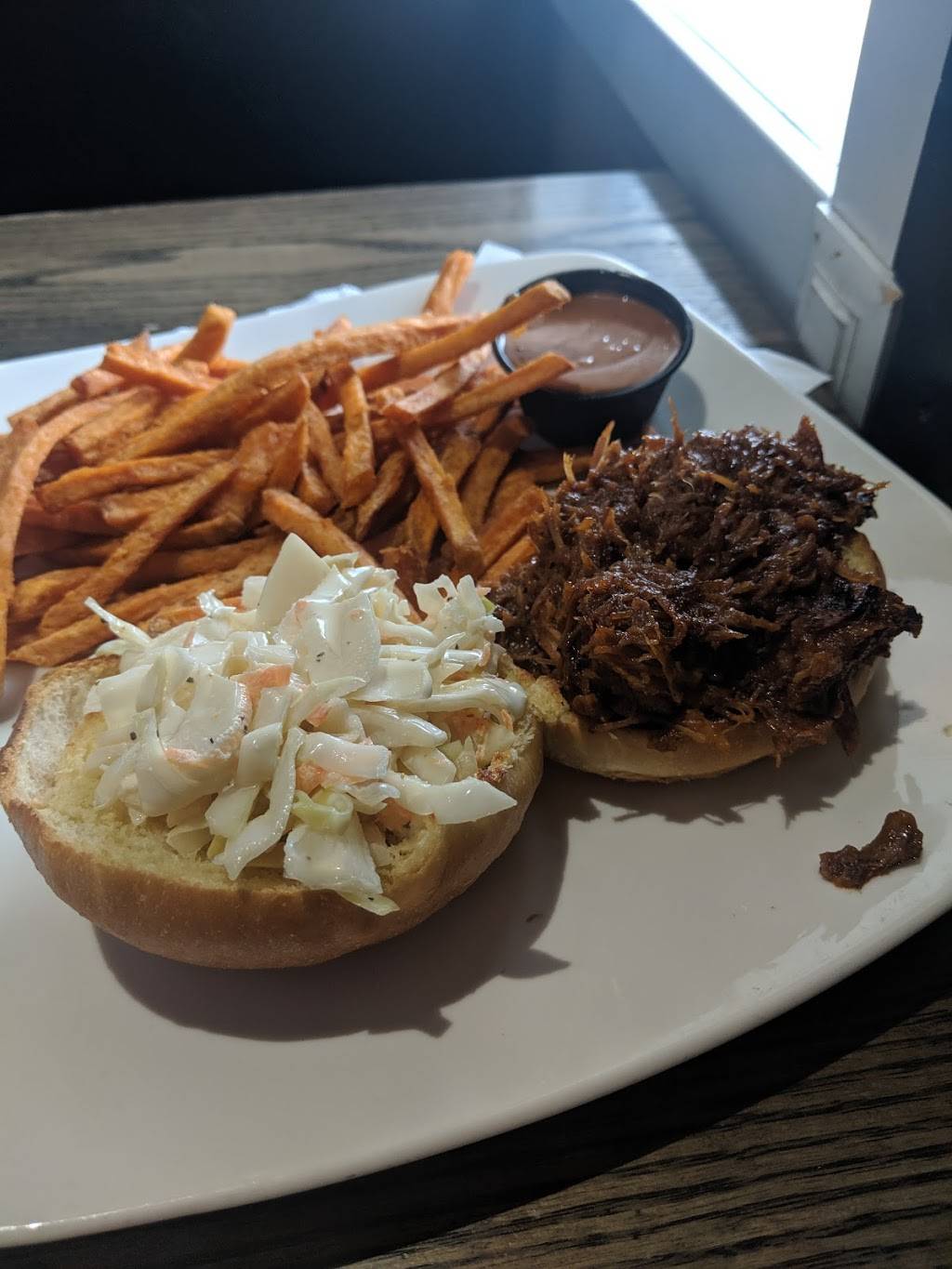 The salad was really large and had a little bit more color than your usual house salad, which is something I appreciate. The price was very reasonable. Crunchy, well prepared sweet potato fries. Large sandwich portions, we usually are happy with our meals here and in the evening there's often live music. Not four stars because the waitress was quite inflexible with the substitutions in spite of offering to pay extra, which resulted in a lot of uneaten food, which I always prefer to avoid, although I took the container home. Fries, for instance don't travel well!!!