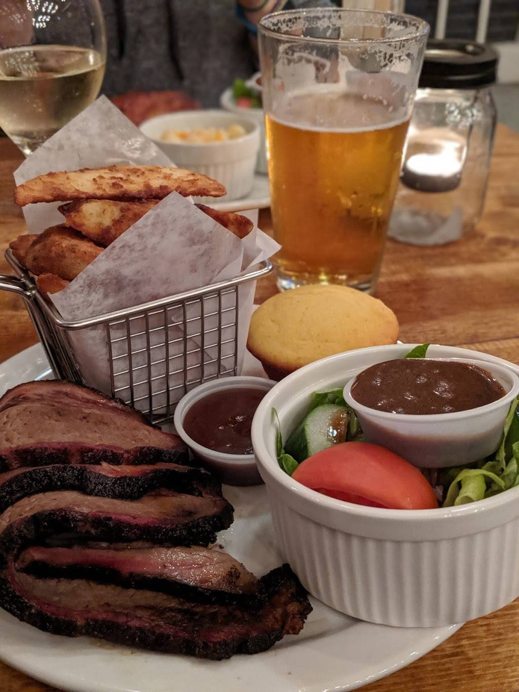 Food was pretty good. I really enjoyed the brisket sauce however I do wish that they gave a bigger portion. The mac and cheese was also really good. My wife had the ribs and wings combo and she said that the wings were amazing. I have to say the interior is done up really nice and the atmosphere is relaxing and inviting. They have local beer on tap witch is nice. Prices are decent but not really a place you would want to eat at every day as two meals with drinks came up to 80 dollars with tip. But its definitely a great place to go for a date night I would recommend if your in the area, check it out