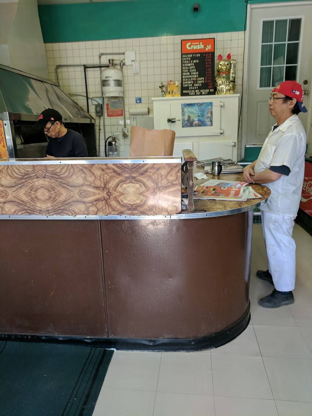 Classic, old school fish and chips place. Takeout only. '60s decor, not a stylistic choice but because nothing's been changed from the '60s. Food can be quite greasy, so sharing one portion between two people is a good idea.
