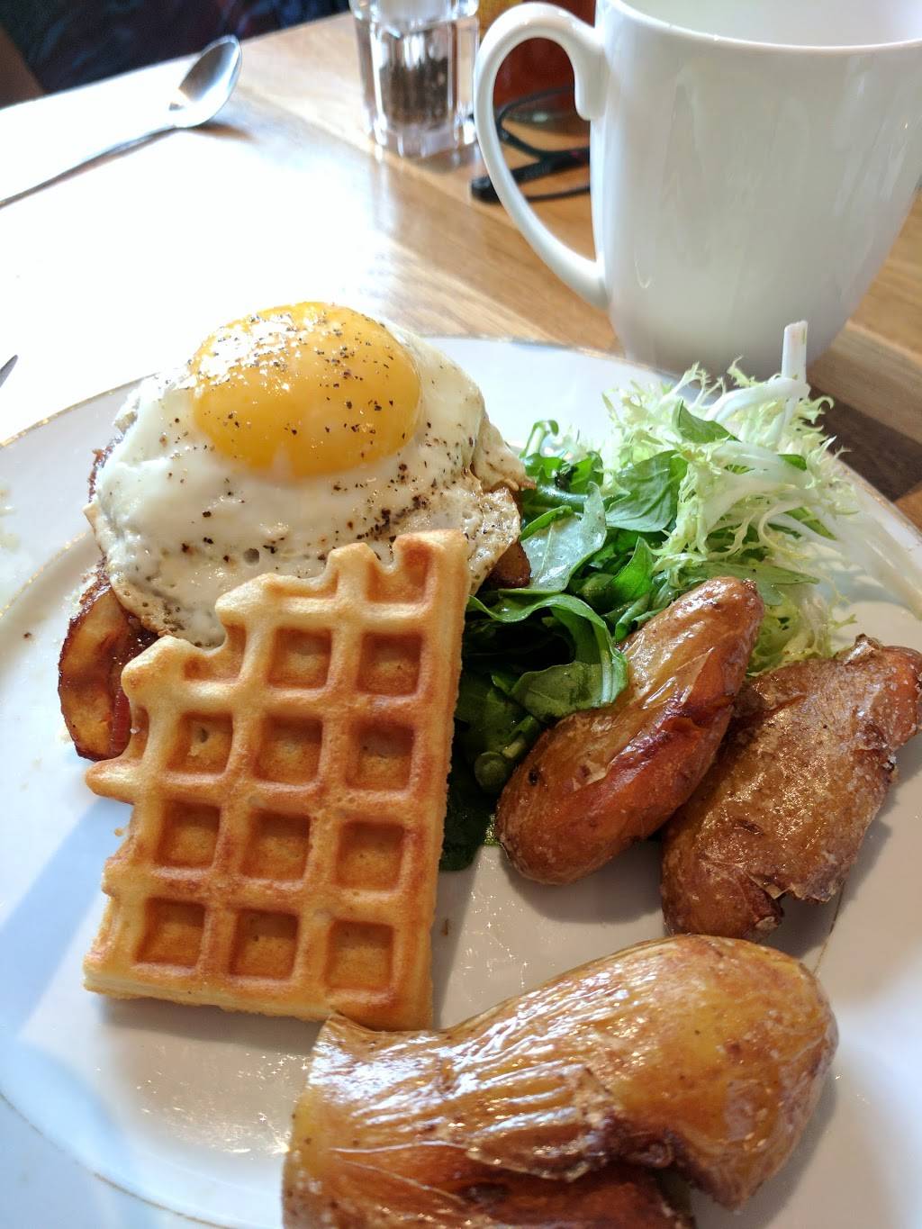 Really nice place! The waitresses are super nice and are welcoming. The restaurant is a bit small but the food more than makes up for it! The coffee is good, they don't have fresh squeezed orange juice. The fallafel sandwich is really crunchy and tasty, the English breakfast sandwich is good but very fatty. I will be back!