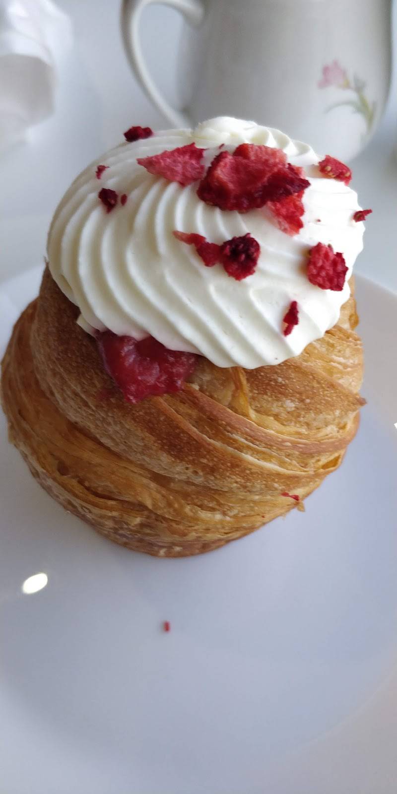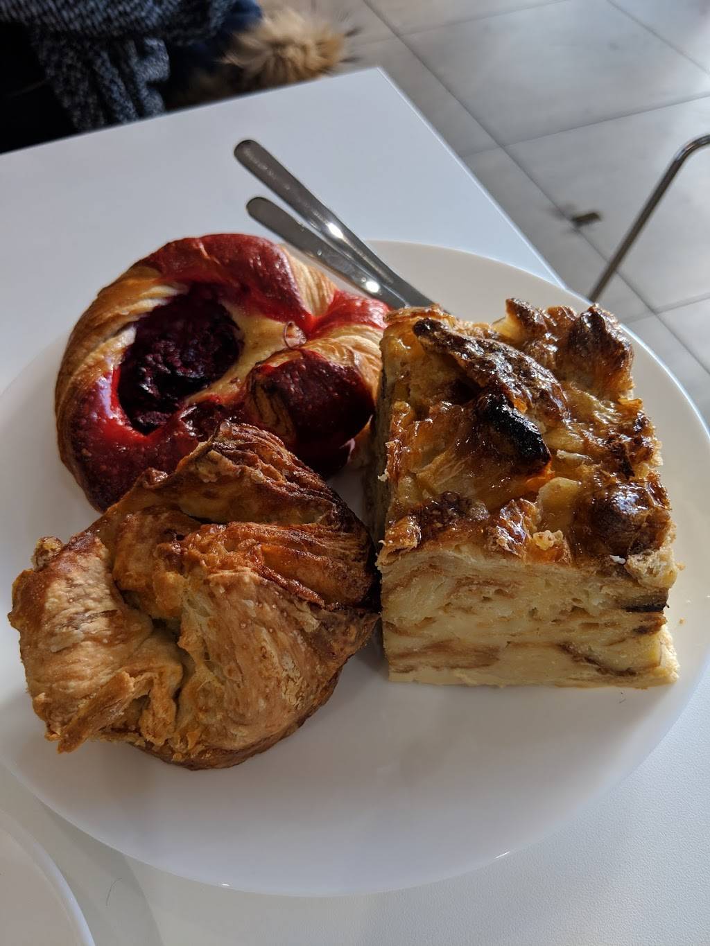 Their raspberry croissants are BOMB. End of story. Their coffee is pretty good. When you used to ask for quiche they would cut a slice from a large quiche pie. That quiche is DELICIOUS! Now they give you a personal quiche, and that one is actually kind of gross. Get the big quiche! Their other pastries are also good. Five stars for the raspberry croissant, though.