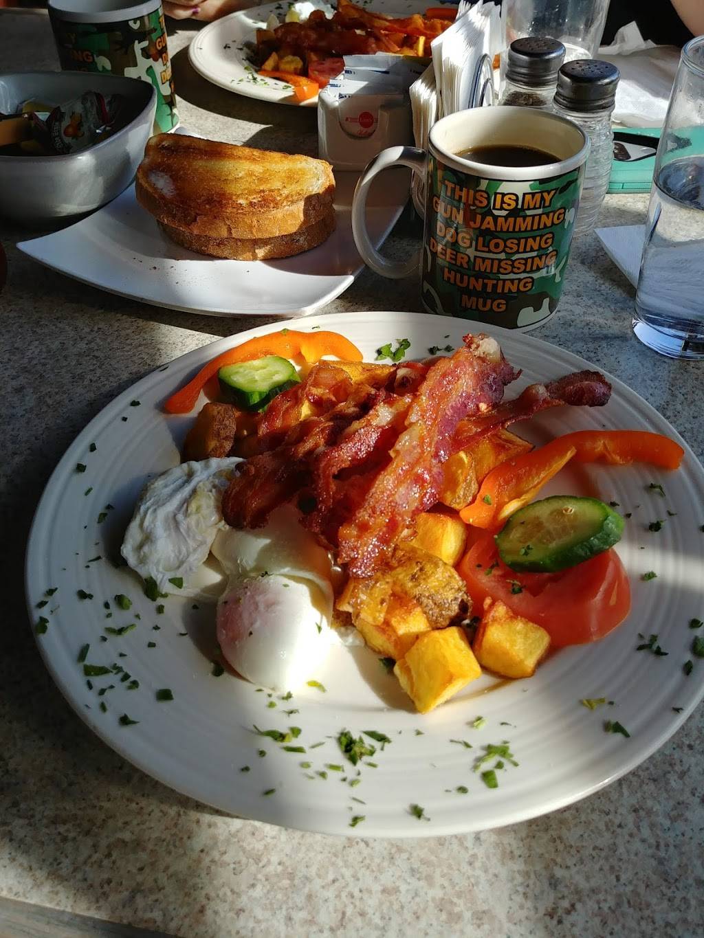Really great basic breakfast. Thought the bacon and potatoes were just a bit better than elsewhere. Nice spot to enjoy on Saturday morning.