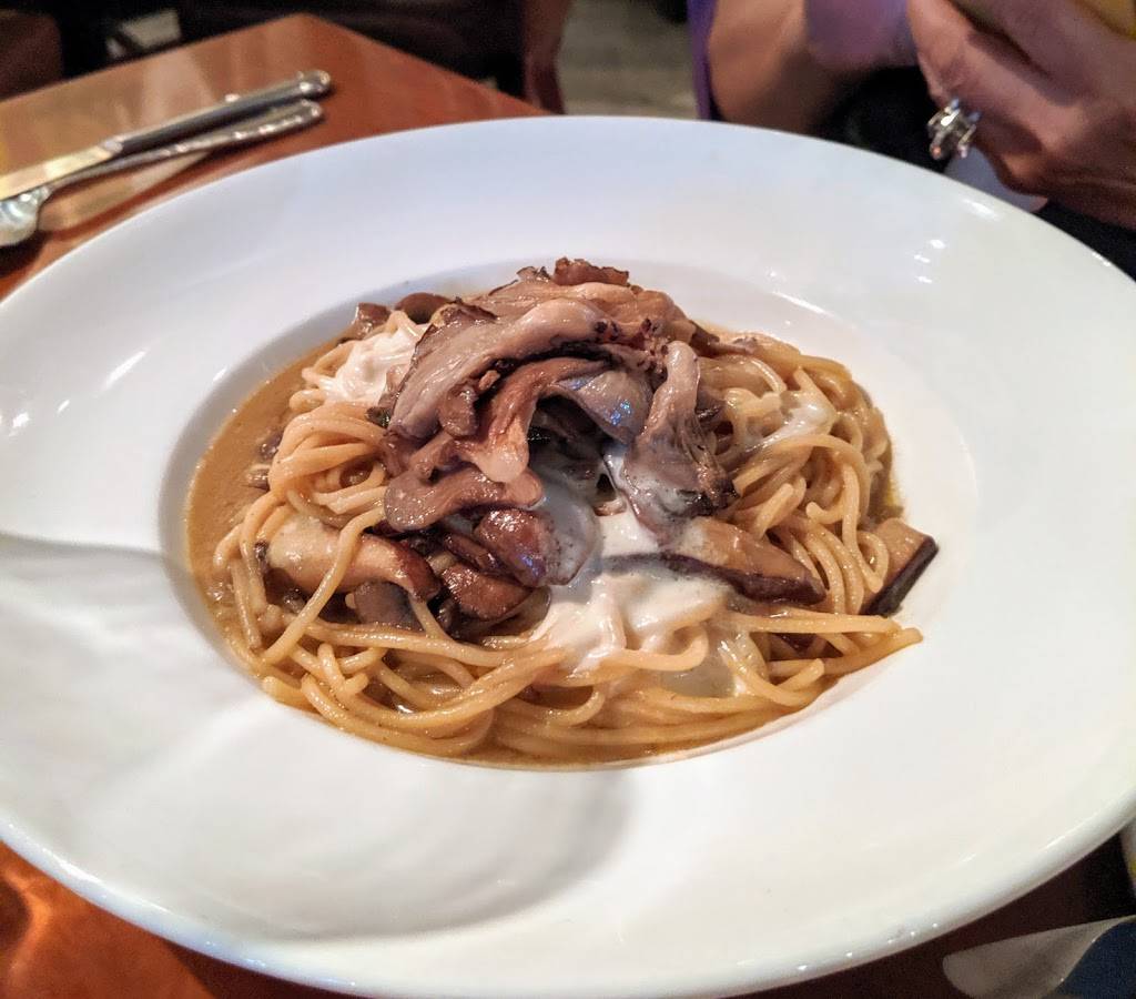 I had the rabbit on risotto and the rabbit was a little overcooked (not sure if that's just how it is supposed to be cooked). Tastes like chicken. One other person at our table had mushroom pasta. On the creamy side. The seafood pasta was good. And the kids spaghetti was good too. Grilled calamari was a hit and buffalo mozzarella was okay.