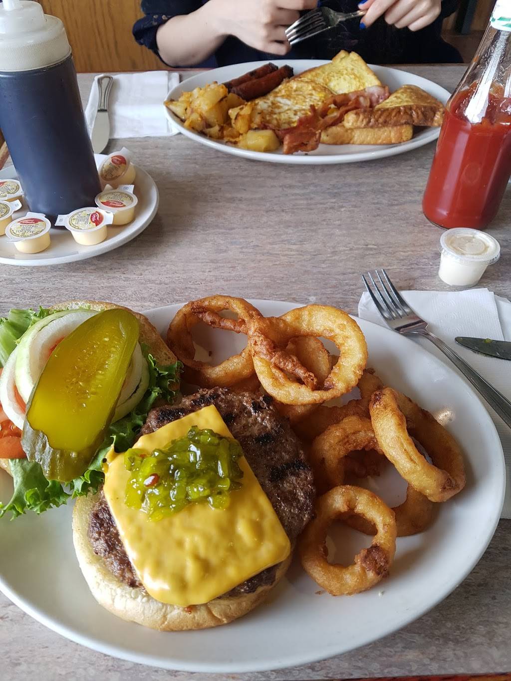 Came here for lunch on a Saturday. It was busy, but we got a table on the patio. I got the Wally burger with fries and gravy. My girlfriend got an omelette with peameal bacon and my son got a grilled cheese with home fries. All of our meals were really good. The waitress double checked that everything was up to standard and came by to refill the coffee without being asked. I would definitely come back.