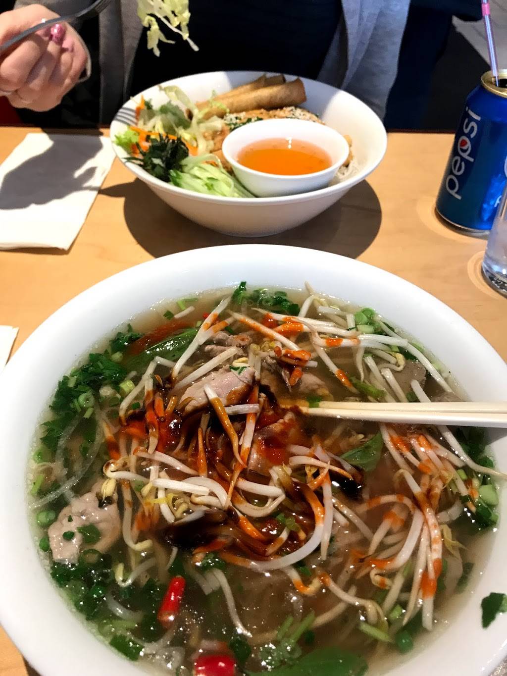 Very hot pho. Great service