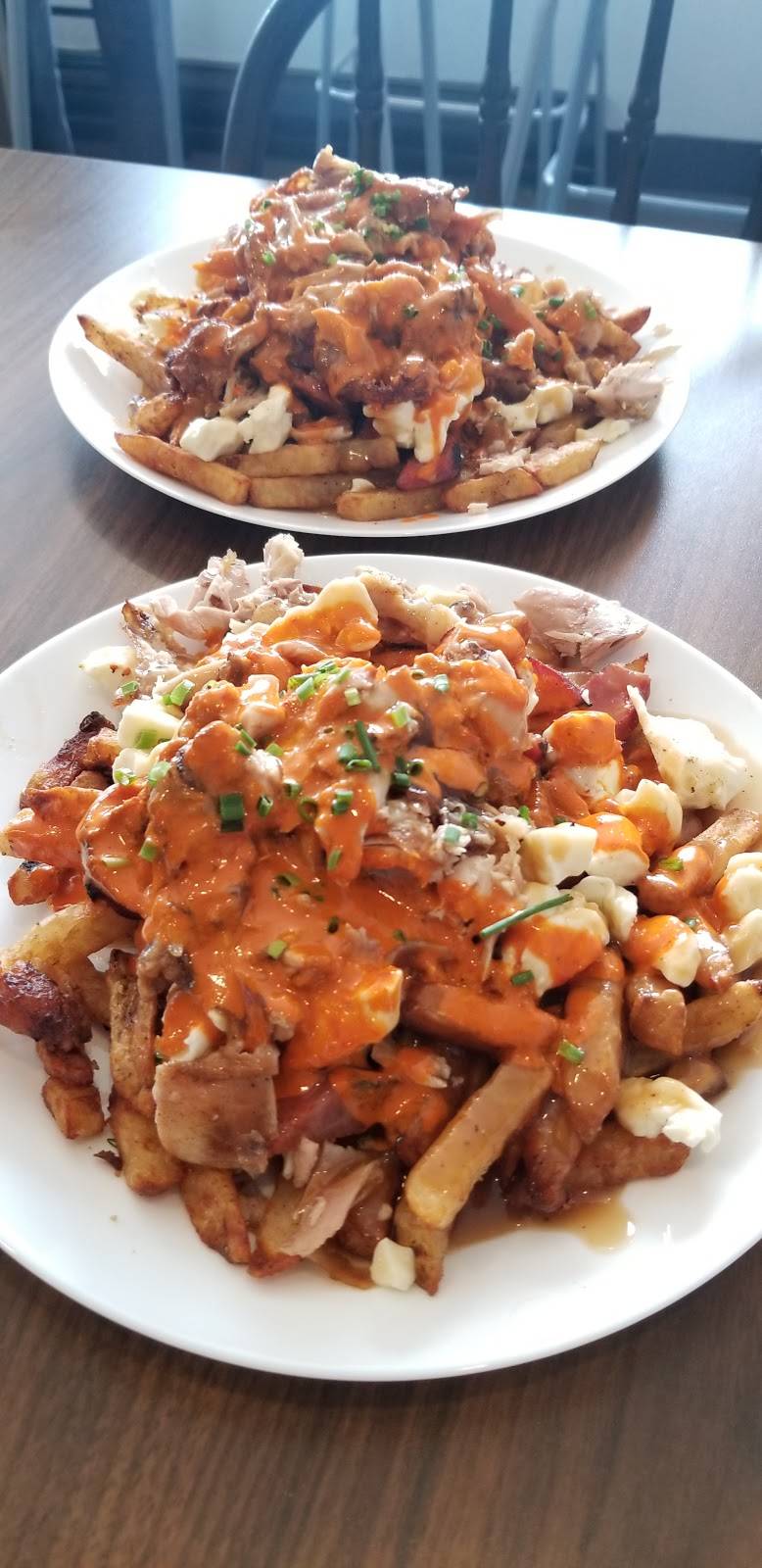 Generous portion. Food is good. We got the chicken breast with fries and salad and the chicken poutine. Their spicy sauce is really tasty.