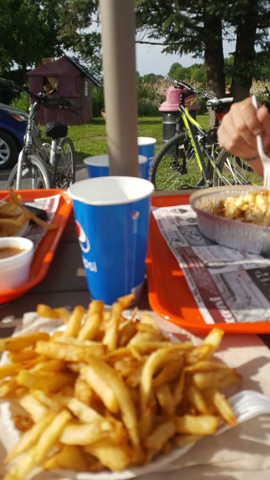 We were sitting on the other side of the river, and caught the smell of fries. I got an amazing original poutine and a big box of of fries for 10$. Not very salty, and very tasty. Visit this place for other Quebec food.
