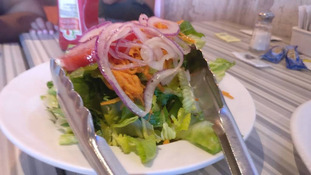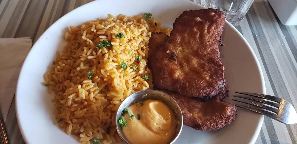 Nice location, across from park. 1/2 rack Pork ribs was great, falling off the bone. Portuguese potatoes were just lumps, nothing special. Waitress got tied up with big party so service was lousy.