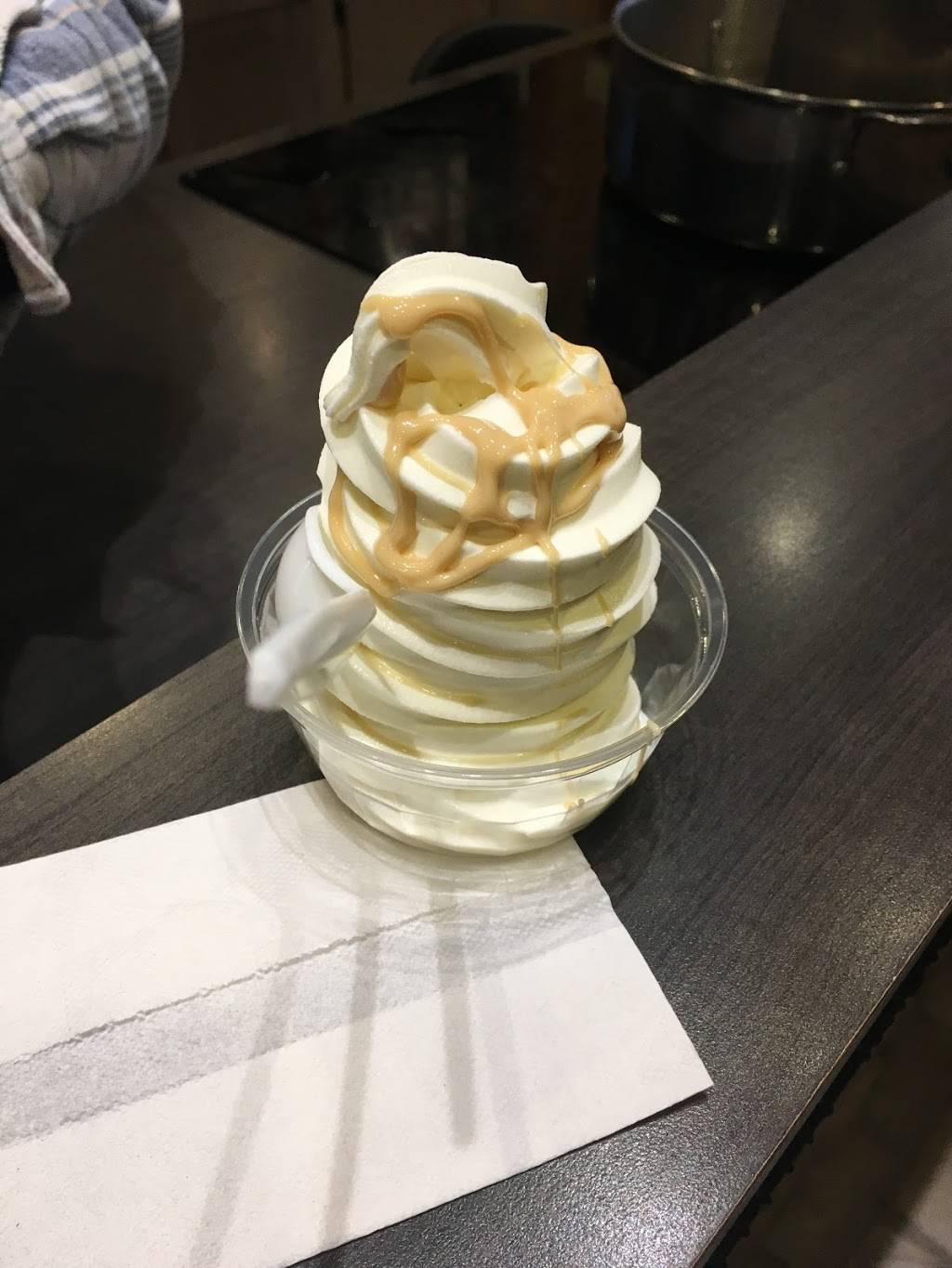Little, cute sugar store. Ordered ice cream with maple syrup. Service was excellent.