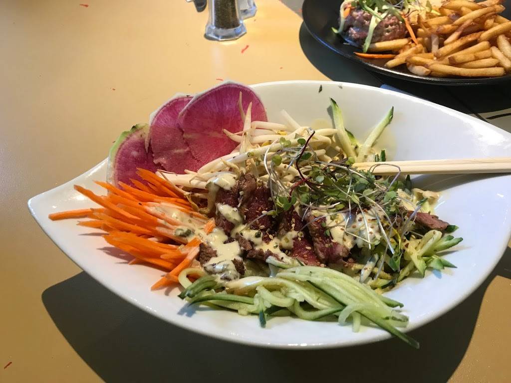 This place is now run by chef Frack le Cunff. The menu is fusion cuisine with salads, tartars, and some Mexican preparations. For the non-adventurous there's a sandwich with Black Forest ham. The desert was a pleasant surprise bunches of crisp noodle sticks surrounded by delicious Quebec strawberries and dark chocolate sauce. The menu describes the history of this dish, originally Chinese, taken by the Portugese who replaced salt by sugar. At the moment the menu is inspired by California, Asia, and Hawaii.