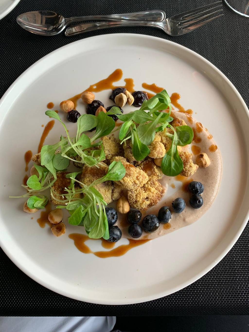 The restaurant is by the water. The food and the service was excellent. We ordered the "Deer" which was deer meat, very tender, with king mashrooms and green beans from the garden, and the "Ravioli with beef stew" which was really good too. Unique cooking and very tasty. I would recommend both these dishes.