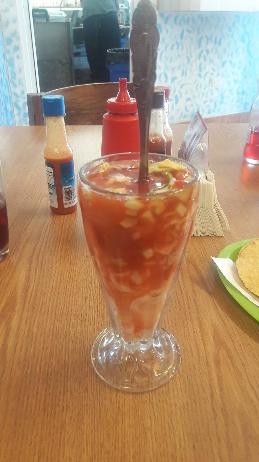 Excellent well priced mariscos. Fish tacos with all the fixings. Popular with the locals. Always good service . Ordered a champeana seafood cocktail. Could not get my spoon to the bottom of the glass container it had so much seafood. A must visit in Tecate. Large place, bring the family. Clean and large restrooms.