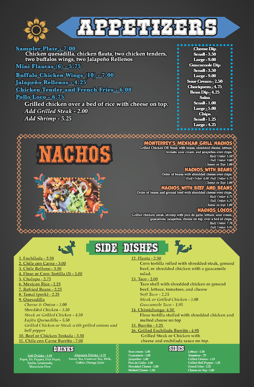 This was an interesting restaurant to say the least. It had odd decor and out of style music, but that wasn't bad. The service was good as we were greeted immediately and the drinks, food, and chips were served in good time and refills were kept up on, though we only got one serving of chips. The food was decent, though it wasn't much to go home about. The guac tasted old and spoiled tho. Otherwise, again, it was decent. I just wouldn't go out of my way for it.