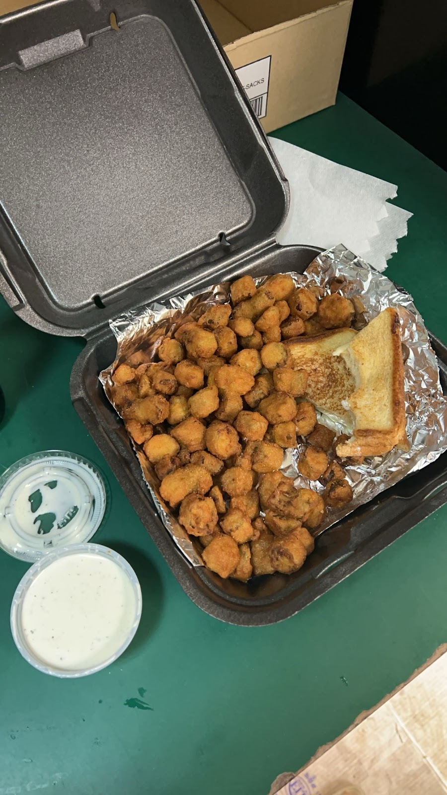 First, I'd like to say the chicken was really good. But that was about it. We got the smallest cup of slaw with 15 wings. We got more ranch than slaw. And my husband said Danny's was better. The poppers were disappointing and were made with cheddar cheese. We also waited an hour in the drive-thru. Very low chance I'll be back, and I'll be limited of what I buy. Everything was $43 with no drinks.