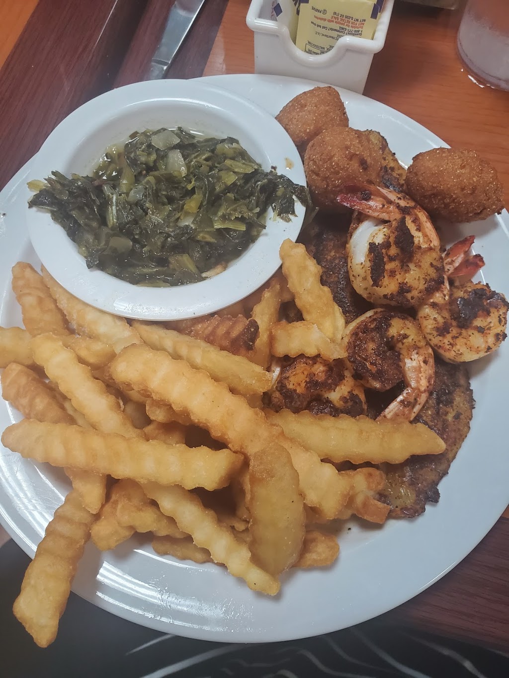 Found this place after visiting Alligator Alley and so glad we did!! This is a hidden gem!! We had a party of 11 (7 adults and 4 kids) and were sat immediately. Our server was very friendly and patient with all of us! The blackened shrimp and fish with turnip greens was so delicious!! 🤤 My husband ordered the country fried steak and gave it a two thumbs up!! 👍👍 Texas BLT is also a must have!! Definitely will be back next time we're in AL.