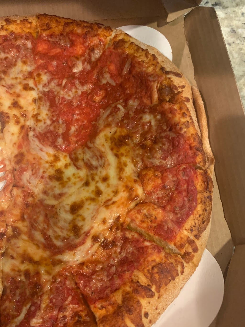 Fresh hot pizza! Good atmosphere and service!