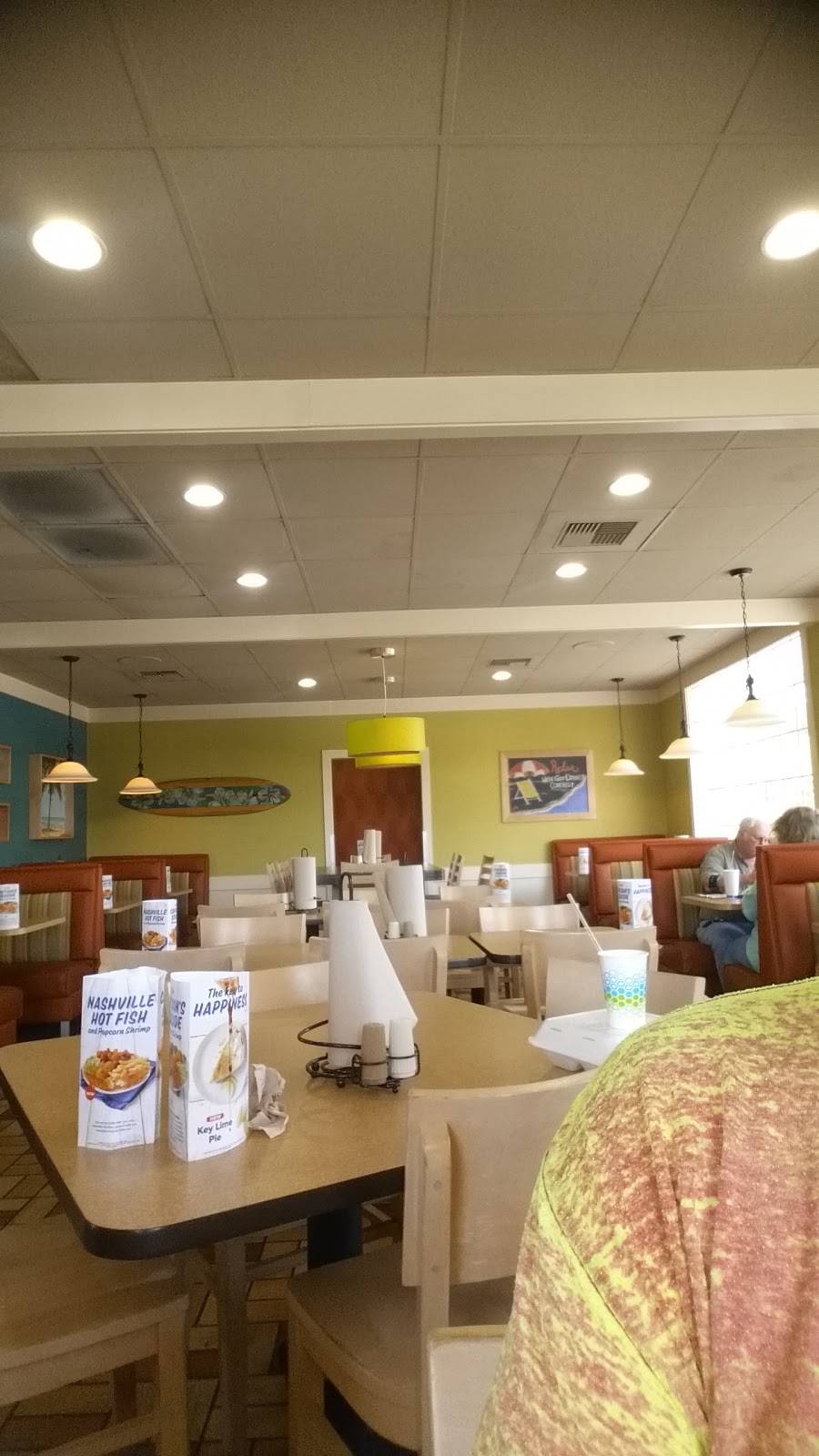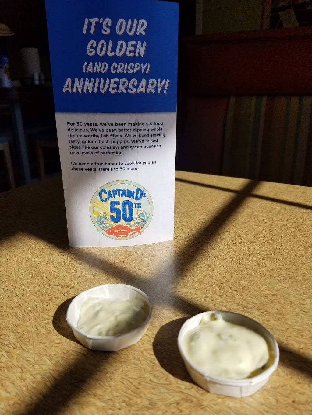This evening was the FIRST time I've ever eaten inside a Captain D's. My son and I order our food from a lovely girl behind the counter which was super nice. She brought the food to our table and even got us refills on our drinks. The food was hot and delicious and the restaurant was clean. Our bill was like about $25 bucks. we ordered fish shrimp stuffed crab okra broccoli and chicken strips. Food was bomb!