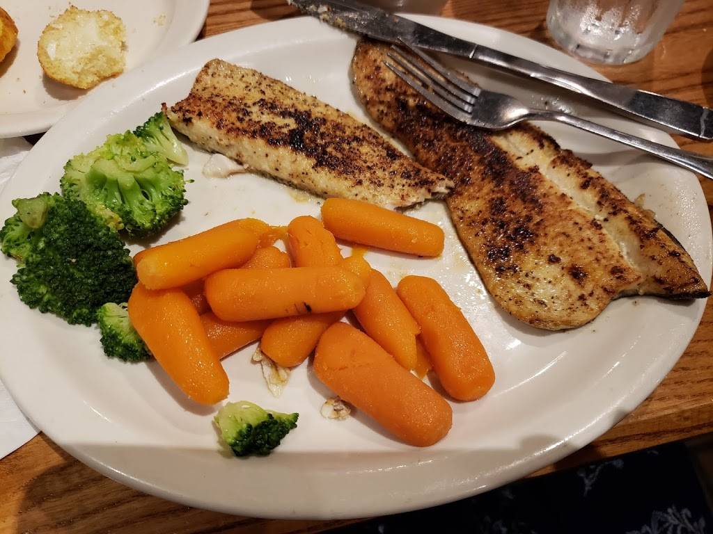 Friday night special was battered deep fried cod. That sounded very heavy so I decided to have the lemon peppered rainbow trout which was baked. It was delicious. It was served with corn bread, broccoli and carrots. The carrots were the baby carrots from a bag and they were served luke warm! The waitress apologized for this and brought me a side of mashed potatoes to replace it. This meal was 7.99! They were very busy and the noise level was very high. It was hard to hear with the music also playing. I would suggest looking into some sound panels to reduce the noise. Waitress and staff were excellent.