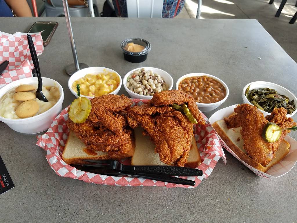 Hot fried chicken. Service is fast. Prices are very reasonable. Chicken is good. I like the medium spiced chicken, but sometimes get the next heat level up. Get two breasts for just a little more and stash the second one in the fridge for the next day. You'll be glad you did. Sides are adequate, but not great in any way.