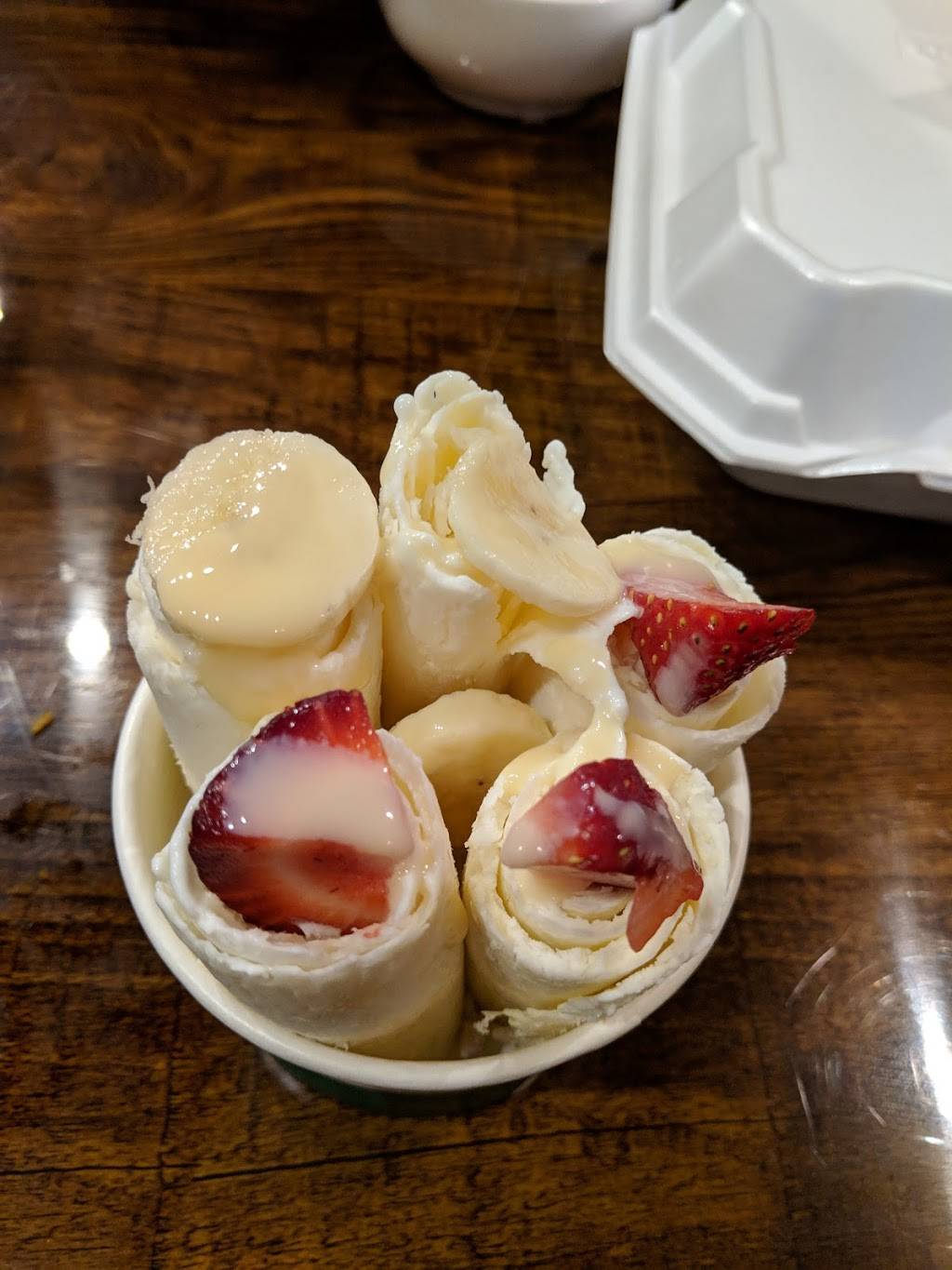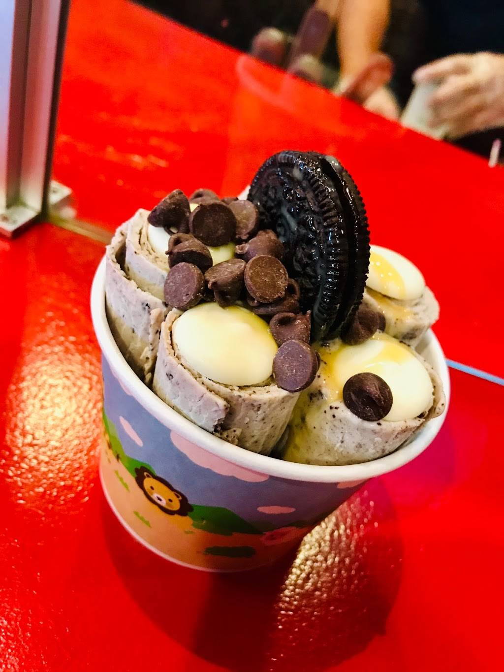 I went here on a Saturday mid morning after a depression fueled mania on Friday. This place and the atmosphere completely pulled me out of the mania and pushed me off the cliff into rolled ice cream serendipity. My rolled ice cream was amazing! My family enjoyed theirs as much as they enjoyed me coming out of the terrified uncertainties of my manic depressive episode! The guy who made our ice cream was exciting to watch. He was meticulous in choosing the freshest fruits for our treat. He literally picked them out one by one. It did take some time, but it was worth it as you pay for the whole experience and excellent treat made with care. Five stars for this glorious therapeutic paddy house!!