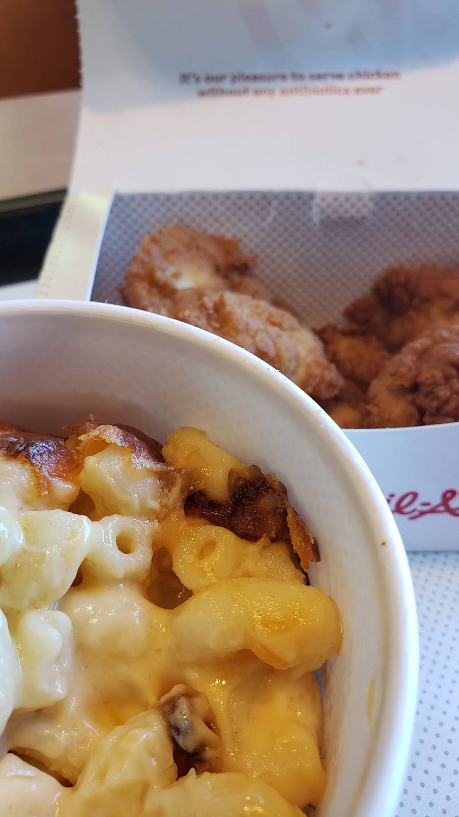 Muy kids love going to Chick-fil-A. The food, the playplace they have a ball every time. Grill nuggets are my favorite. Need more selections for salad dressing.