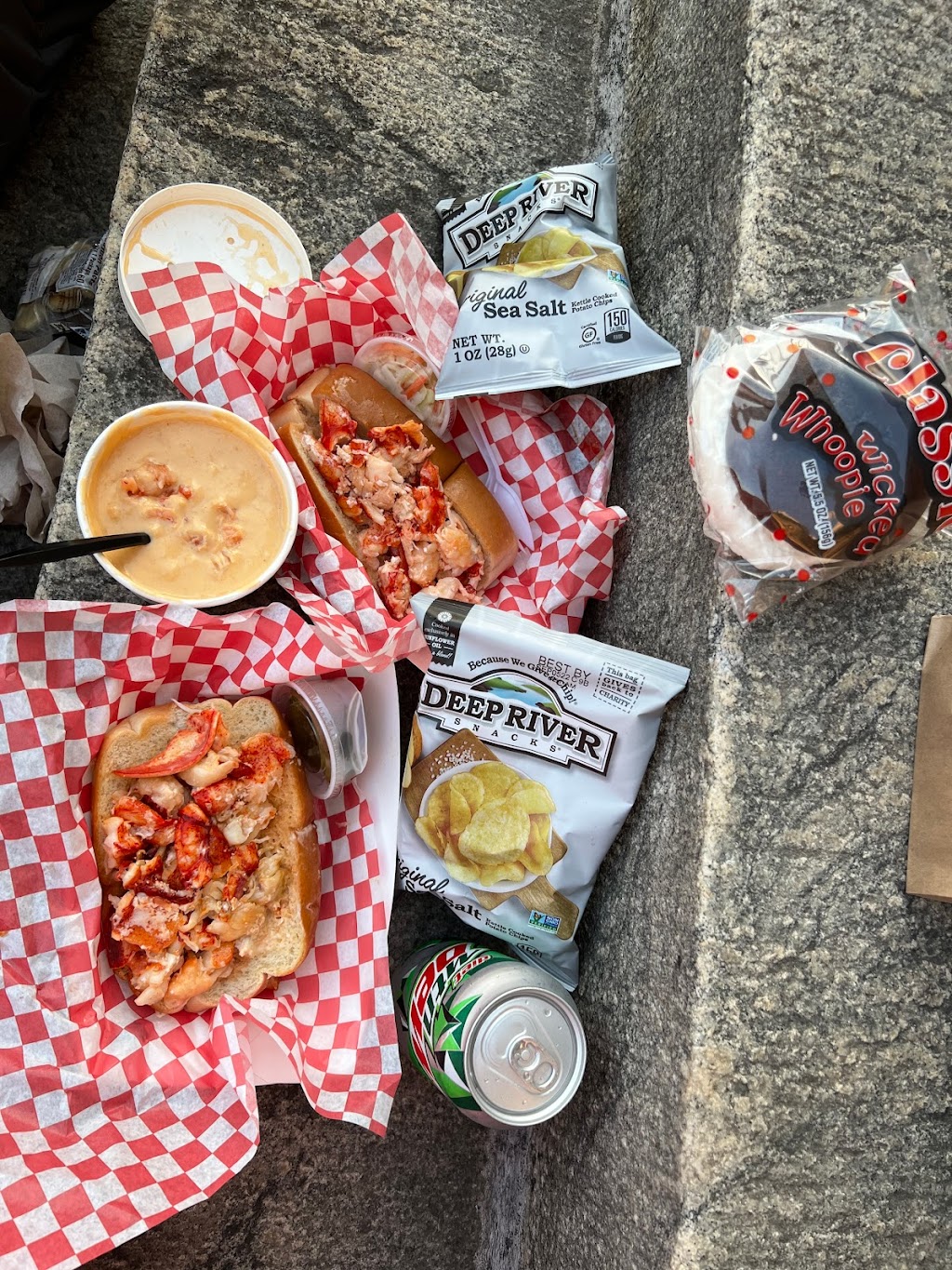 Y’all omggggg I literally spent so much here because we ordered half the menu 😂. Everything single thing was so delicious. My husband and I ordered: 2 perfect storm rolls, lobster bisque, potato salad, Whoopie pie, and moxie. The rolls were absolutely AMAZING and large. WORTH the money. I wasn’t too crazy about the moxie. It’s like a root beer crossed with a dr. Pepper. I think it’s all about preference though. Everything else was very good and will get again. Highly recommend getting there early wherever they are because they ran out of rolls in about 1 Hr due to the high demand. We will definitely be getting food from them again!!