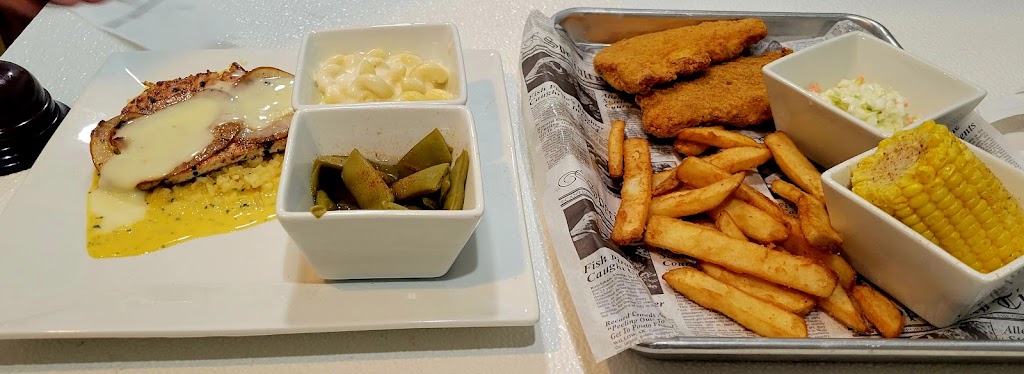 First visit today for lunch. Had the Spin Dip appetizer and the Smothered & Covered Chicken with green beans and fries.