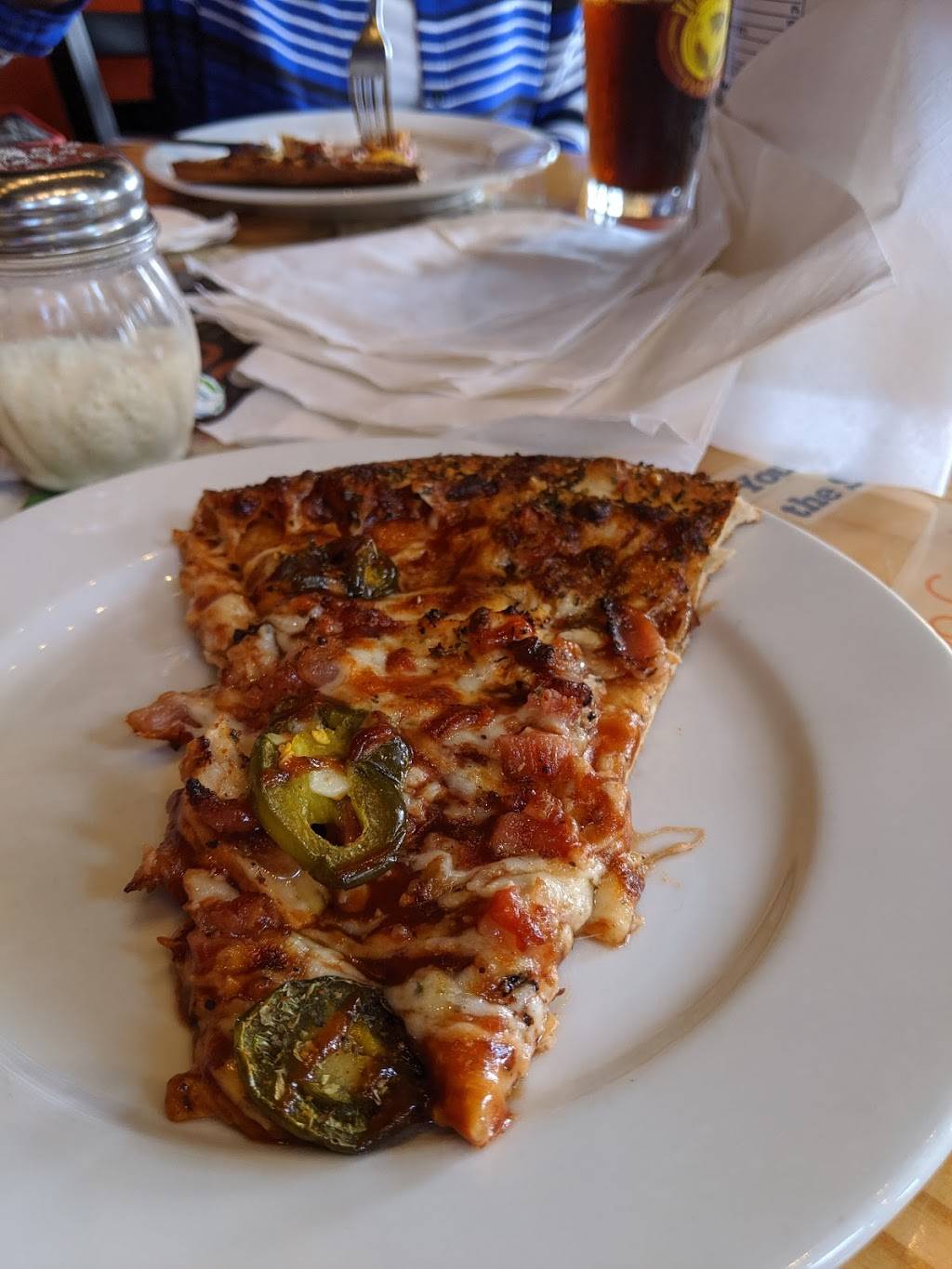 It's a cute little place with some unusual details like stain glass windows and some artwork. It has a nice outdoor area with Cornhole. The pizza is pretty good and fast and the beer selection is good. It has gelato and adult beverage milkshakes which is pretty nice though I didn't try those. It also has coffee and espresso drinks which makes it a place with lots of variety.
