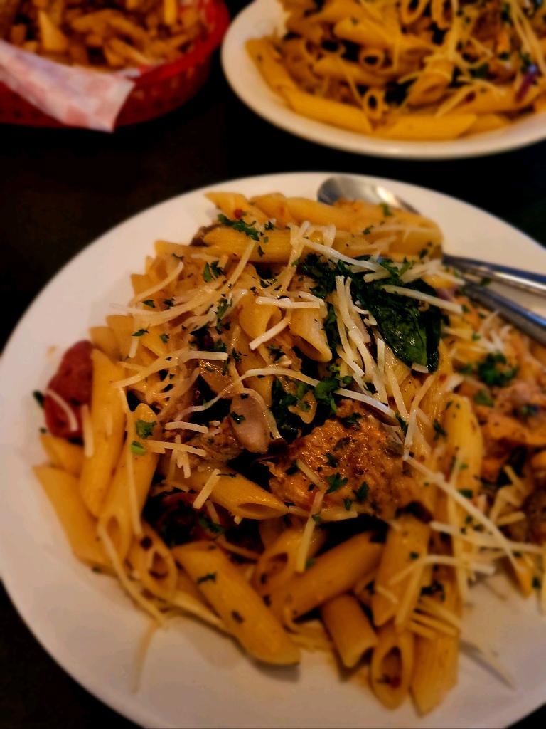 Neighbors highly recommended this diner so we went on a Sunday (day after the 1000 Stair Climb event in Old Bisbee). Although the restaurant had run out of the lamb burger which I really wanted to try and a couple of other dishes, I ended up ordering the Wild Mushroom Pasta and a side salad . OMG. One of the best Pasta dishes I have ever eaten(and I have had some amazing pasta dishes at fine restaurants in Tucson and Phoenix). All of the ingredients were fresh including freshly grated Parmesan/Romano , and fresh variety of wild mushrooms. The pasta was al dente and every bite was like a little flavor explosion in my mouth. My dining companion had the basic burger and it was cooked to order on a ciabotta type bun. Lettuce/tomato/onion were fresh and crisp. Fries were served with the burger. Their homemade house vinegarette is amazing as well.