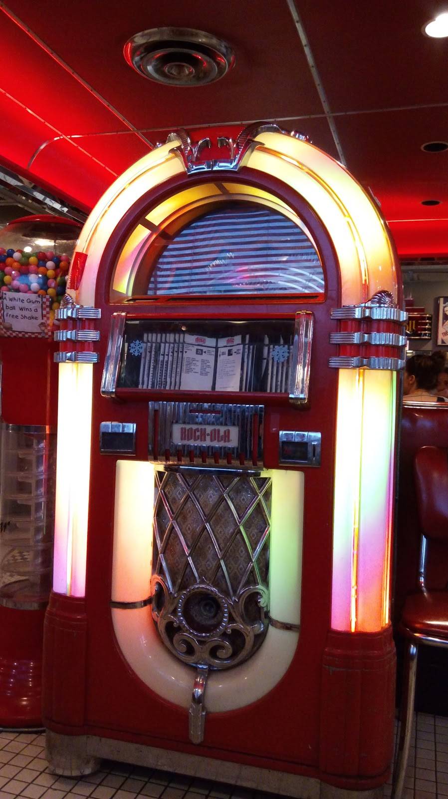 The decor is 50’s style inside. Reminiscent of a Mel’s Diner.