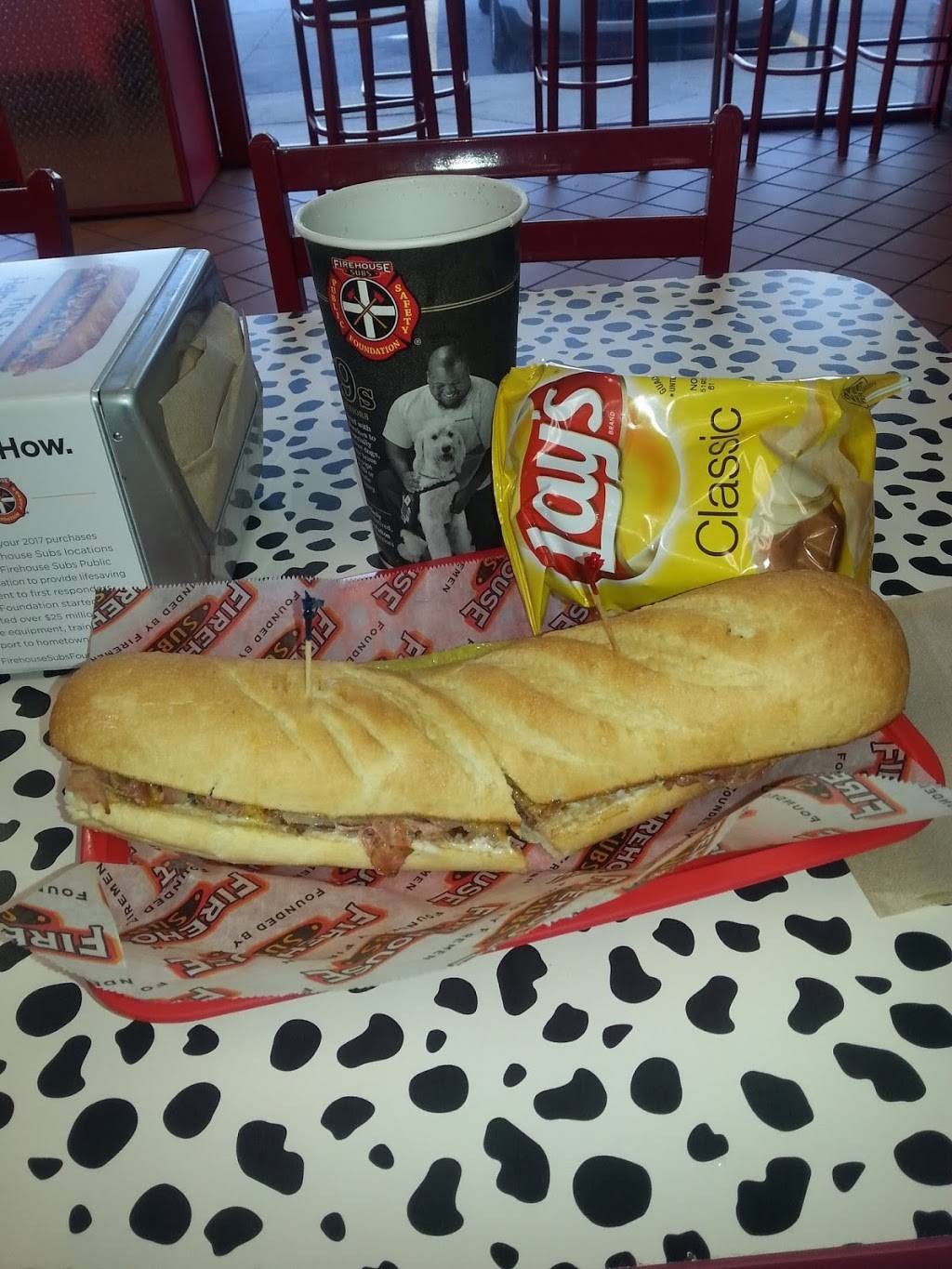 Went here for lunch with my daughter today. This was our 1st time at a Firehouse Sub. We had the New York Steamer. It was delicious. Just the right amount of meat and cheese. The bread was soft with just the right amount of crisp to the crust. We we're surprised that the combo meal included our choice of drink size. The sweet tea had the perfect amount of sugar and was fresh. The staff was very friendly and helped us select our lunch. I like that they give back to the firefighters.